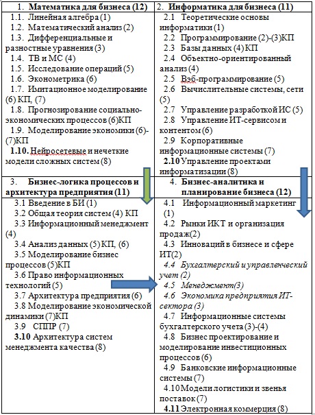 Образовательные траектории ООП 38.03.05 «Бизнес-информатика» профиль «ИТ-менеджмент» - наименование дисциплин (семестр)